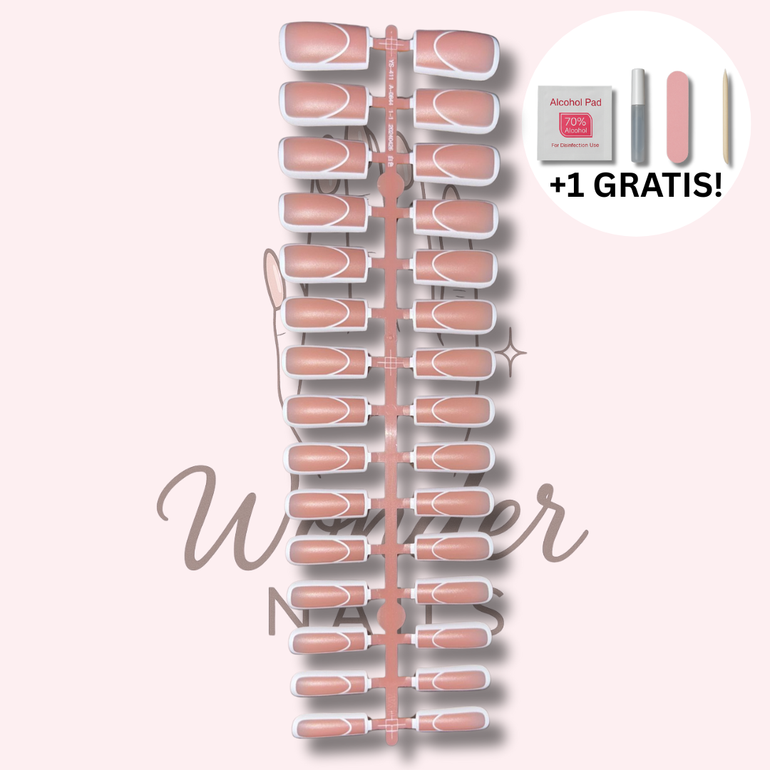 Stil: Weißes Linien-French-Design mit klaren Konturen für einen minimalistischen Auftritt